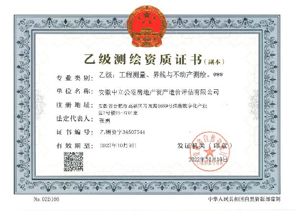 經(jīng)過一年多的精心籌備和申報,日前,安徽中立公鑒房地產(chǎn)資產(chǎn)造價評估有限公司(原安徽建工房地產(chǎn)土地資產(chǎn)評估有限公司)經(jīng)安徽省自然資源廳審批通過,正式獲得工...